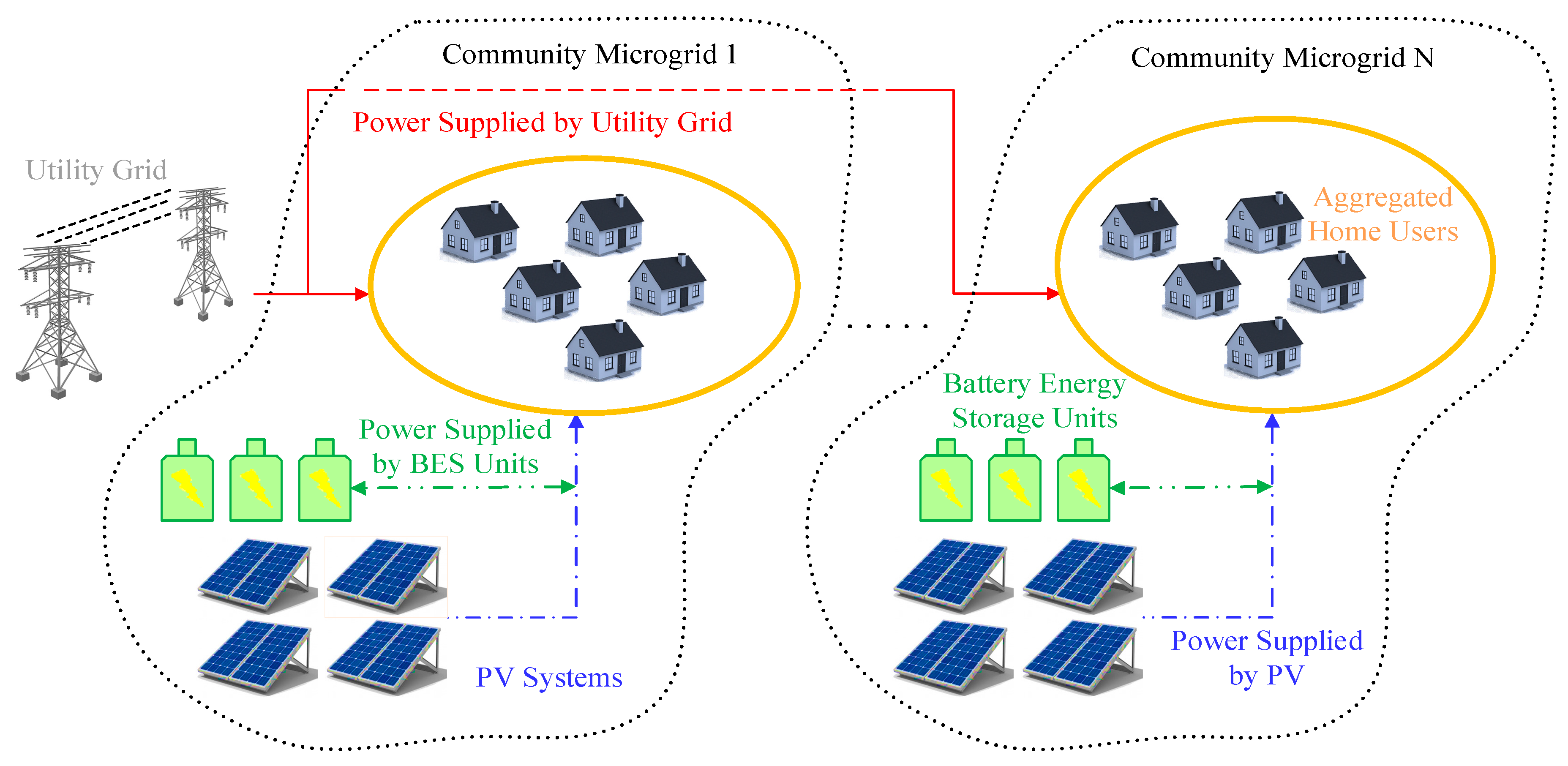 Microgid diagram from article "Development of a Modelling and Simulation Method for Residential Electricity Consumption Analysis in a Community Microgrid System"